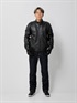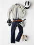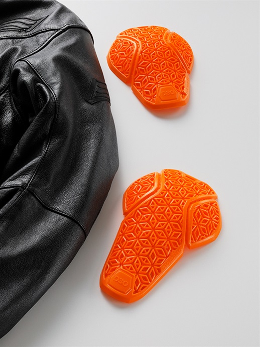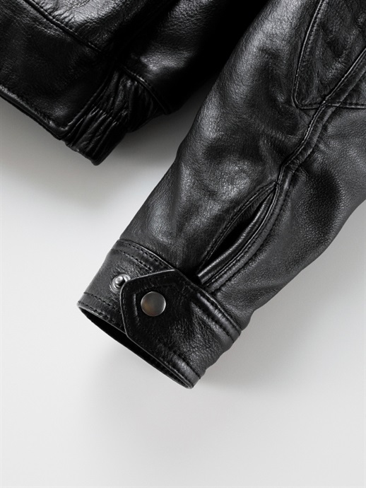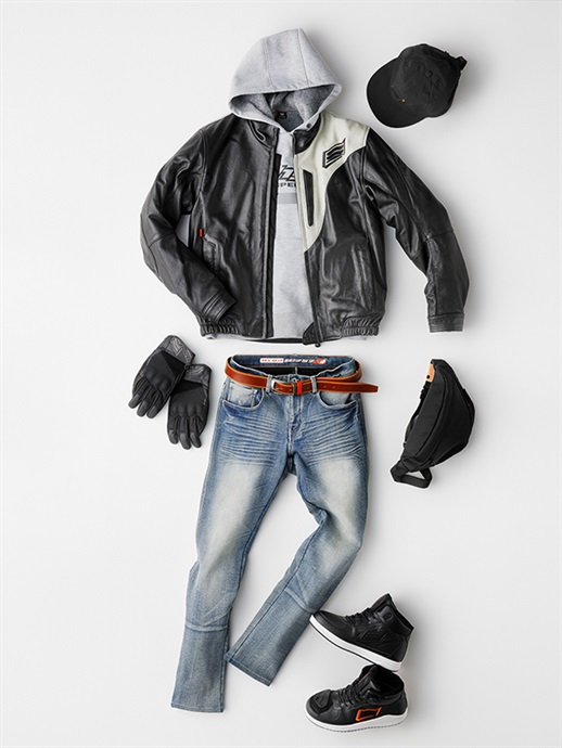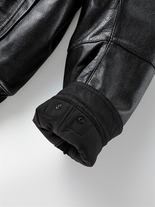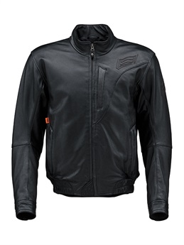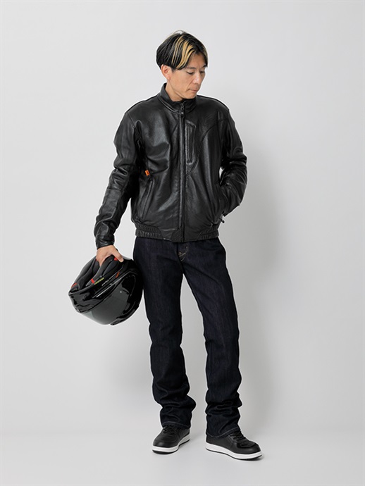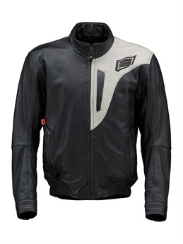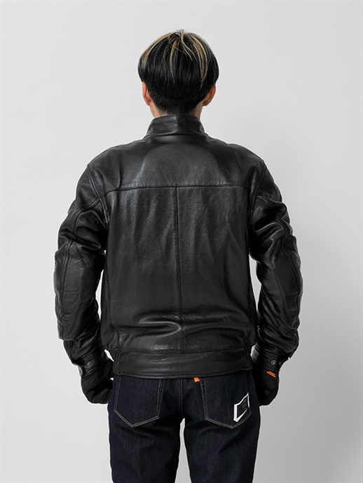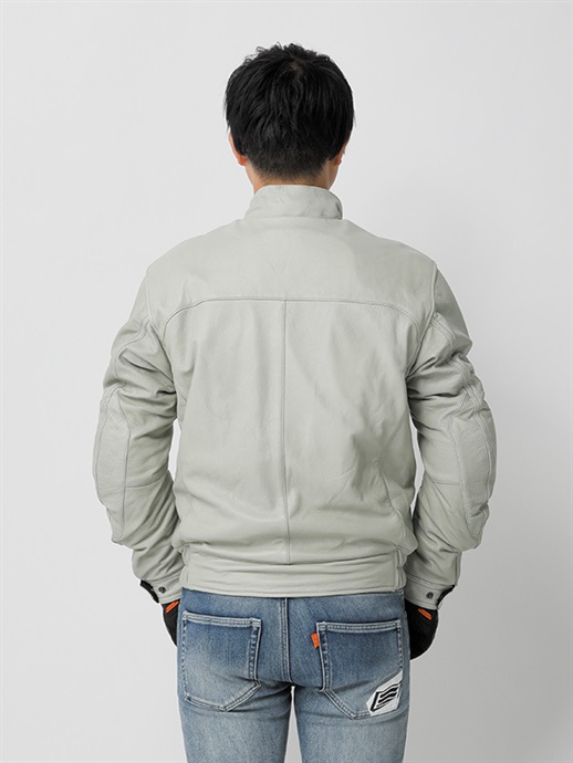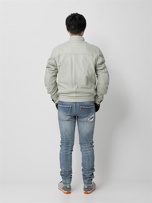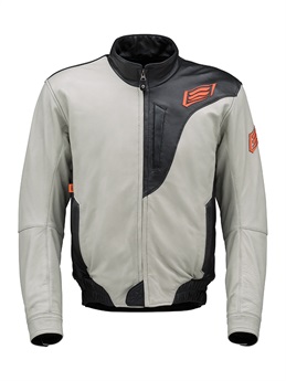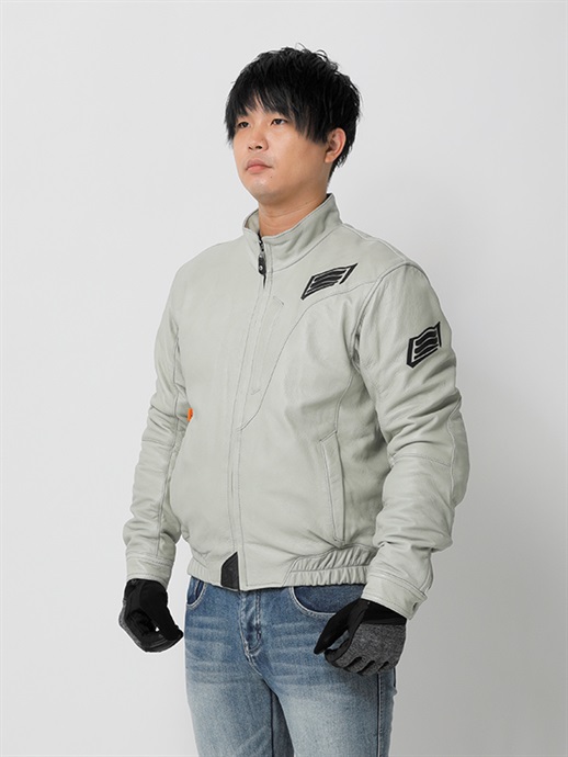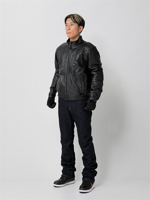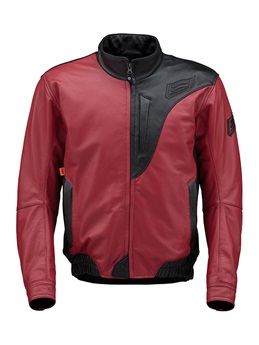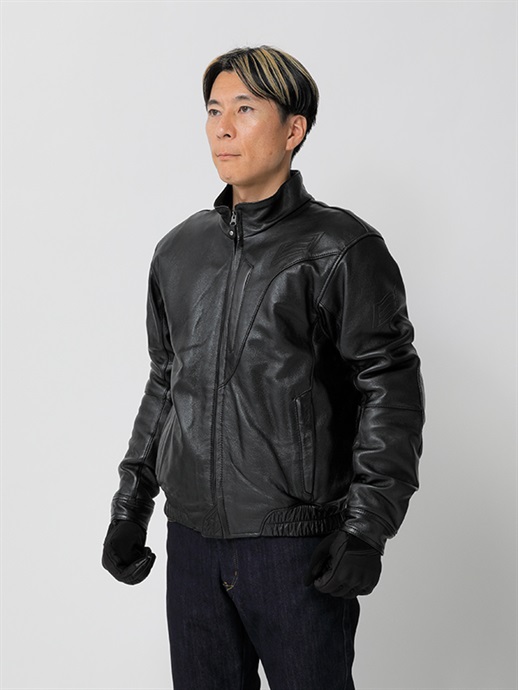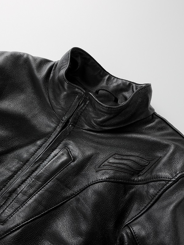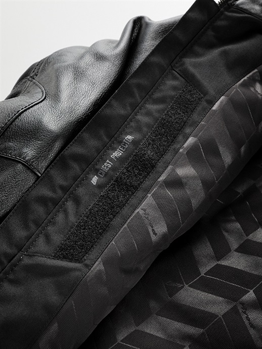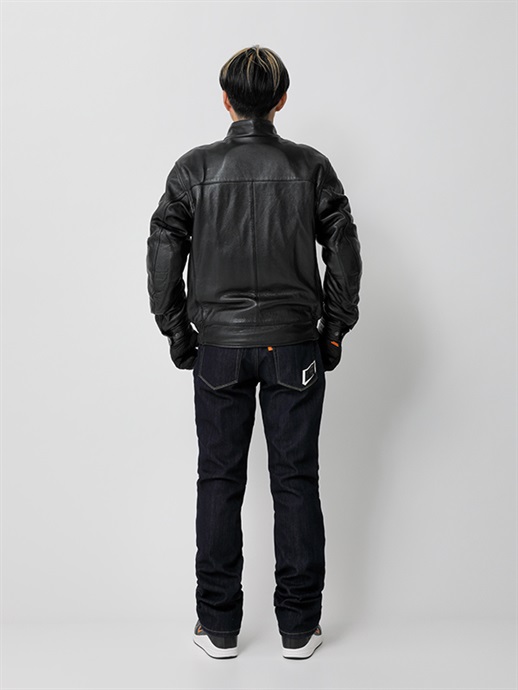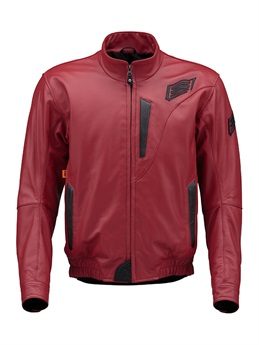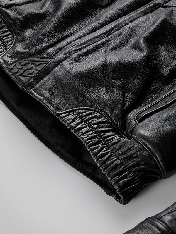 “スタジアムジャケット”のテイストを採り入れたブランニュー・レザージャケット。ツートンダイレザー(ブラック・アイボリー)とリラックスした着心地、袖のカフス、裾のリブニットがST-Xレザーの新境地を開きます。身頃にポリエステル中綿をインサートし、裏地には起毛トリコットを裏使いして保温性を高めています。レッドの革のみ、しなやかさが特徴のカウライトレザーを採用。肩と肘には新設計の薄く柔らかなエアースルー構造のD3O® Diablo™プロテクターを採用(どちらもCE規格・LEVEL1認証)。