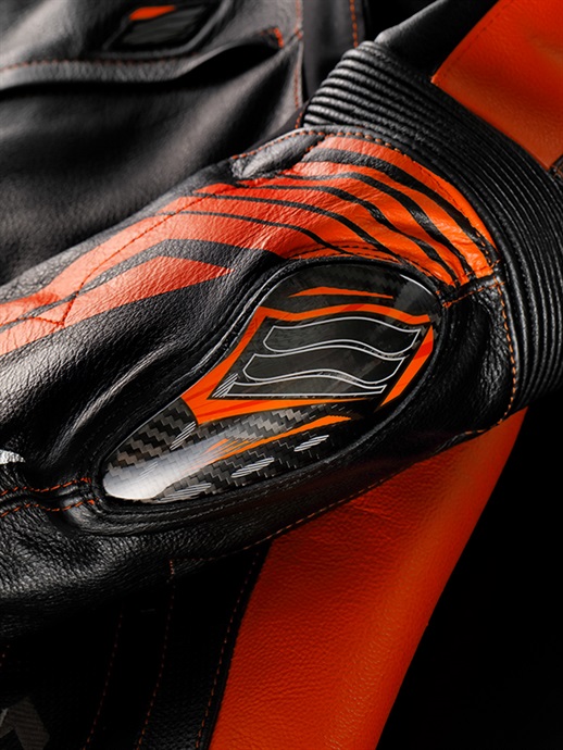 肩と肘のサーフェイスカーボンプロテクター内部には、HYODレーシングレザースーツに搭載されているハードプロテクター(CE規格適合品)をインサート。ハードプロテクターにはD3O®プロテクターも備わり転倒時の衝撃を吸収します。※CE規格とは欧州統一規格に基づいた試験を経て認証された規格で、今や国際レベルの安全規格となっています。