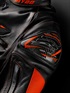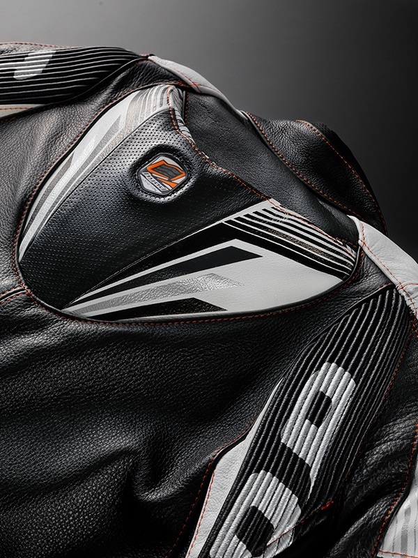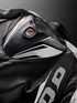 背中上部にネックガードを装備しています。レーシングレザースーツに装備しているネックガードをコンパクトにした、ストリートウエア専用のネックガードです。ヘルメットに干渉しないサイズと形状で設計されています。