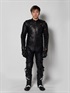 上品な光沢を放つフラットステアレザーにマシンパンチングメッシュ加工を施したフルレザーメッシュパンツのブーツインモデル。