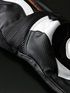 膝から脛(すね)にかけては、D3O®をインサートしたHYODレーシングレザースーツに搭載しているハードプロテクター(CE規格適合品)を装備しています。※CE規格は欧州統一規格に基づいた試験を経て認証された規格で、今や国際レベルの安全規格です。