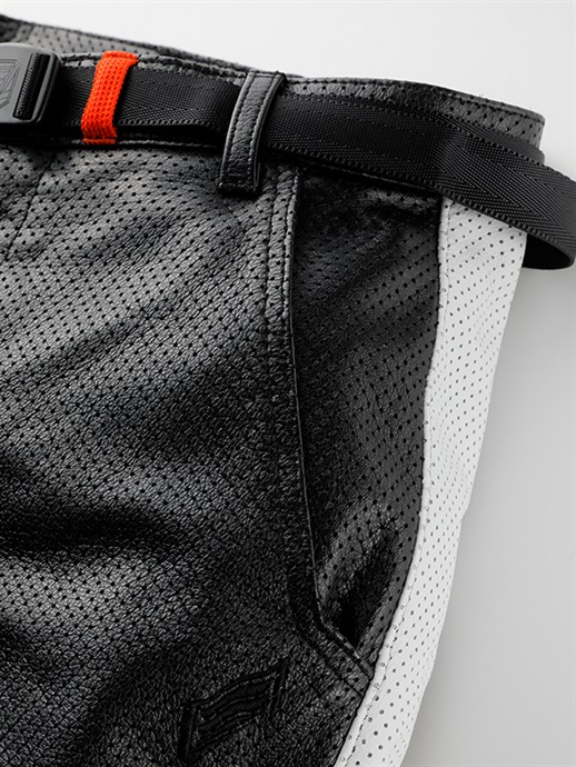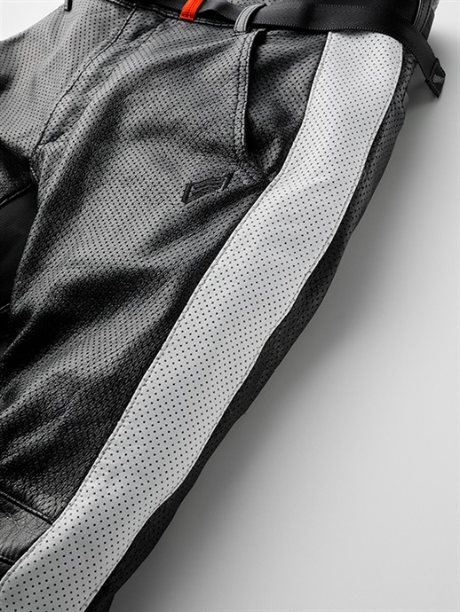 ST-X D3O® RIDE MESH LEATHER PANTS〔SIDE LINE〕は、ライディング時のフィット感と軽快なデザインを両立し、さまざまなシーンを心地よく楽しみたいライダーに向けた一着です。
