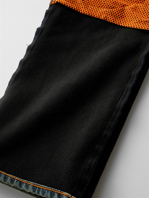 表地の裏側に防風フィルムとマイクロフリースをボンディング(接着)して、防風性と保温性を高めています。さらに風を直接受ける前側には、蓄熱・保温効果があるソーラーセンサーを装着して保温性を向上させ、真冬の長時間のライディングを想定したスペックに仕上げています。