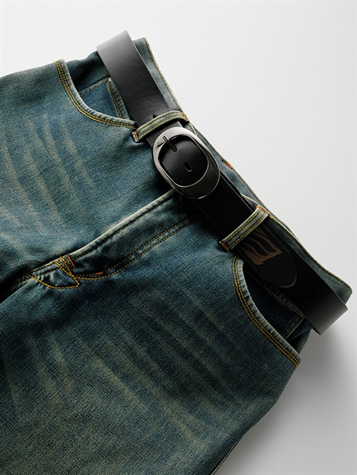 ツーリングからチョイ乗り、日常的なシチュエーションに最適なボトムス“デニムパンツ”。そんなライダーの声から生まれたライディングデニムが“HYOD SPORTS-DENIM”です。デニムパンツ自体の着用感はもちろん、最も工夫を凝らしたのは体の動きに対応するパターンメイキング。とにかく穿きやすいと言われるのはその工夫から生まれています。バイクに跨った際の“腰まわりのフィット感”と“股の開きやすさ”をはじめとした抜群の運動性、“ヒザの曲げやすさ”を可能にするサイズ感と一般のデニムでは考えられないほどの長いレングス(股下の長さ)は、実際に走ってみてはじめて納得できる穿き心地を実現しています。