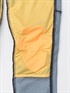 裏地(メッシュインナー)にプロテクターを装着する構造になっています。膝部分にプロテクターの位置を決めるステッチを設けていますので、それを利用して膝プロテクターの位置を2段階で調整することができます。標準装備の膝プロテクターは下側で装着されています。