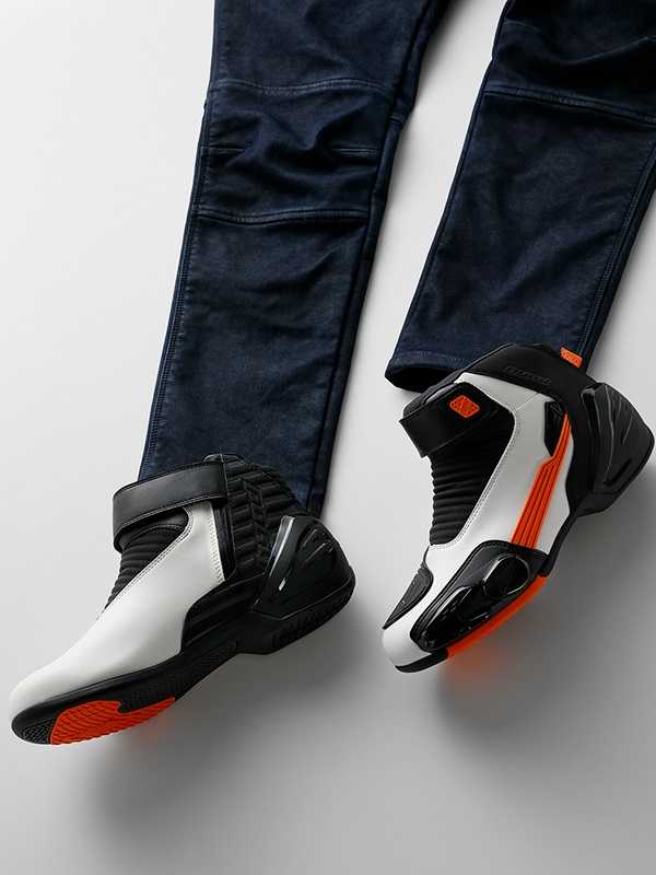 自分らしいバイクライフには自分らしいコーディネートを。ボトムスの雰囲気を大きく変えるのが、スポーツデニムとフットウエアの組み合わせ。スタイルやカラー、マテリアル、シルエットなどを組み合わせて、ぜひ自分らしいコーディネートをお楽しみください。