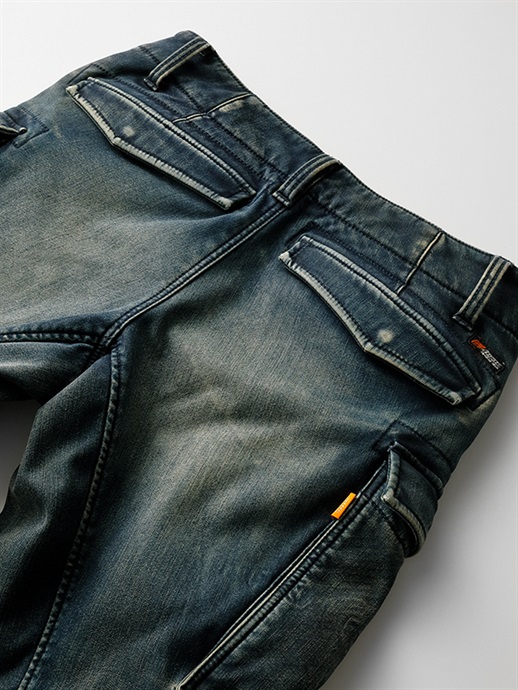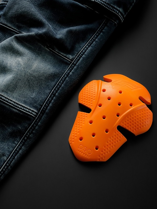 膝には衝撃吸収力と装着感に優れたD3O®プロテクターを標準装備しています(着脱可能)。体型に合わせて上下2段階の位置調節ができます。プロテクションがソフトでフレキシブルなため、着け心地やデザイン、シルエットな多くのメリットを生み出しています。