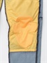 裏地(メッシュインナー)にプロテクターを装着する構造になっています。膝部分にプロテクターの位置を決めるステッチを設けていますので、それを利用して膝プロテクターの位置を2段階で調整することができます。標準装備の膝プロテクターは下側で装着されています。