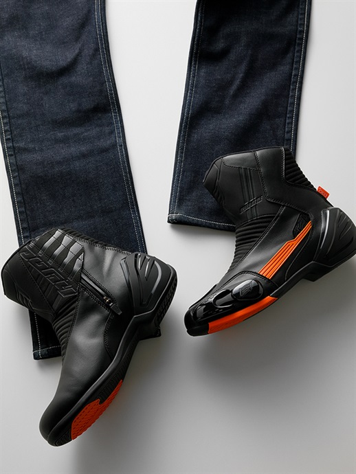 自分らしいバイクライフには自分らしいコーディネートを。ボトムスの雰囲気を大きく変えるのが、スポーツデニムとフットウエアの組み合わせ。スタイルやカラー、マテリアル、シルエットなどを組み合わせて、ぜひ自分らしいコーディネートをお楽しみください。