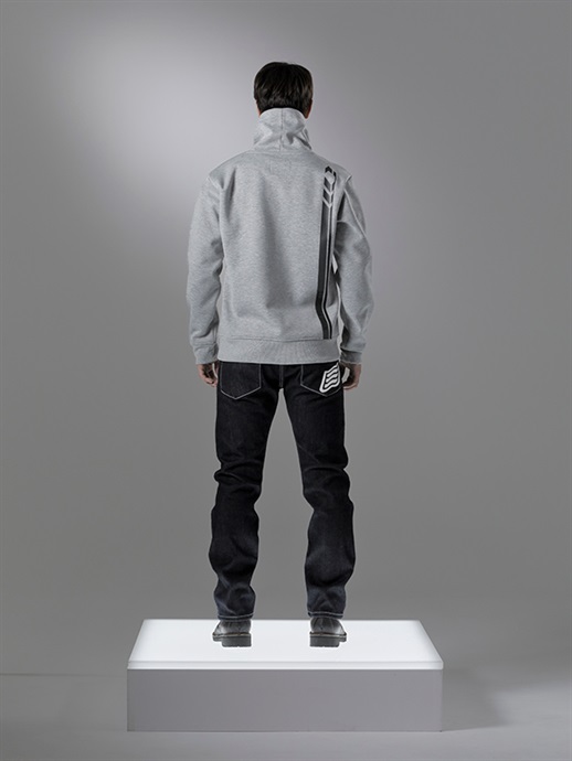 表地の裏側に防風フィルムとマイクロフリースをボンディング(接着)して、防風性と保温性を高めています。さらに風を直接受ける前側には、蓄熱・保温効果があるソーラーセンサーを装着して保温性を向上させ、真冬の長時間のライディングを想定したスペックに仕上げています。