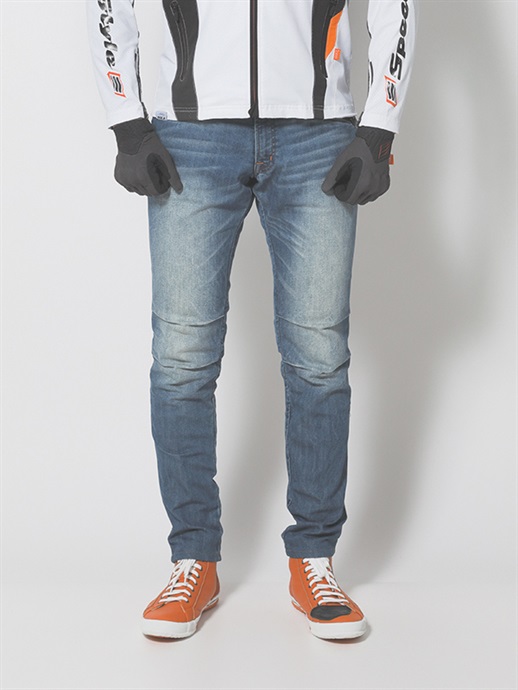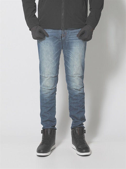 スポーツデニムには、夏でも涼しく快適に着用できるパフォーマンスインナーとのレイヤリングがおススメです。 水分が蒸発する際の気化熱作用により体をクールダウンさせる効果があります。また、なめらかなで滑りのよい生地は、汗をかいた際のパンツとの引っ掛かりを軽減し、快適な着用感をキープ。夏でも快適にツーリングをお楽しみいただけます。