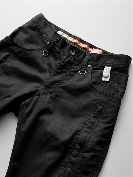 膝には衝撃吸収力と装着感に優れたD3O®プロテクターを標準装備(着脱可能)しています。体型に合わせて上下2段階の位置調節ができます。プロテクションがソフトでフレキシブルなため、着心地やデザイン、シルエットなどの多くのメリットを生み出しています。