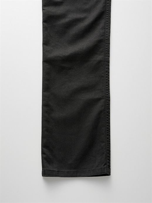 肌触りにすぐれたストレッチ素材を使っています。シルエットは、全体的にほどよくフィットし、太ももから膝にかけては徐々に細くなるテーパードスタイル、膝から裾にかけてはストレートスタイルに仕上げています。