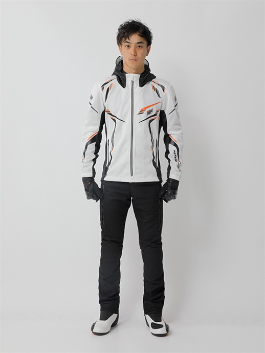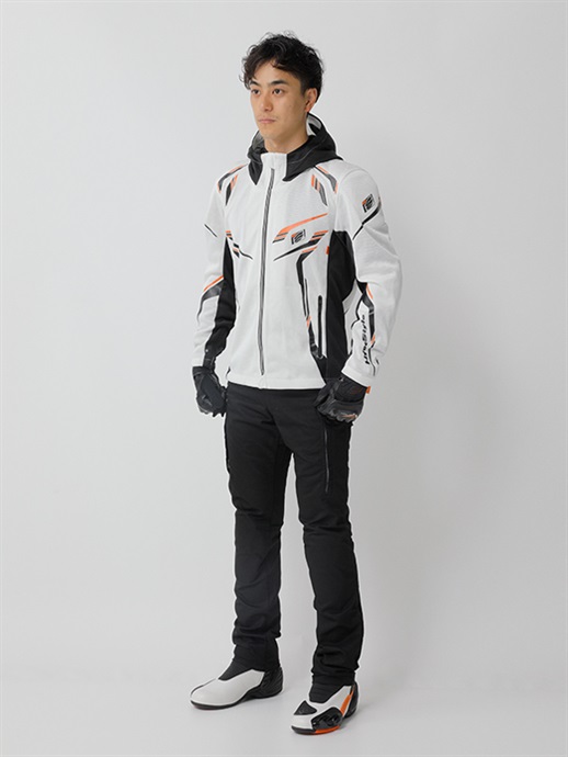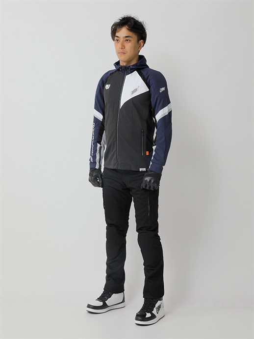 シルエットは、すっきりとしたテーパードスタイル。脚全体を包み込むようなラインが自然な脚長効果を生み、ブーツとの相性も良好です。跨った際のずり上がりも抑えられ、安定したライディングポジションをサポートします。