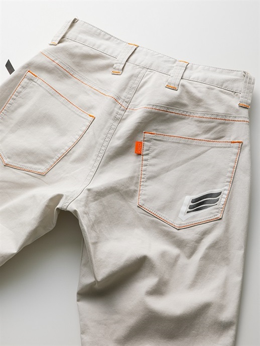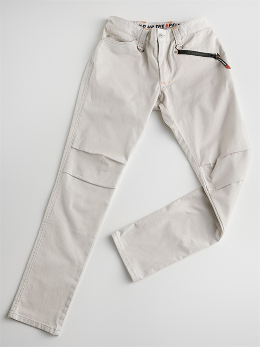 パターンには、股がみの深さを徹底的に研究して導き出されたHYODライディングデニムパターンを採用。前傾姿勢でも腰まわりがしっかりと追従し、背中が出にくい設計としています。足の開きを妨げず、膝も曲げやすい立体構造により、ワインディングからツーリングまで幅広いシーンでストレスの少ない動きを実現。腰まわりのフィット感と安定感を高めながら、自然なライディングをサポートします。