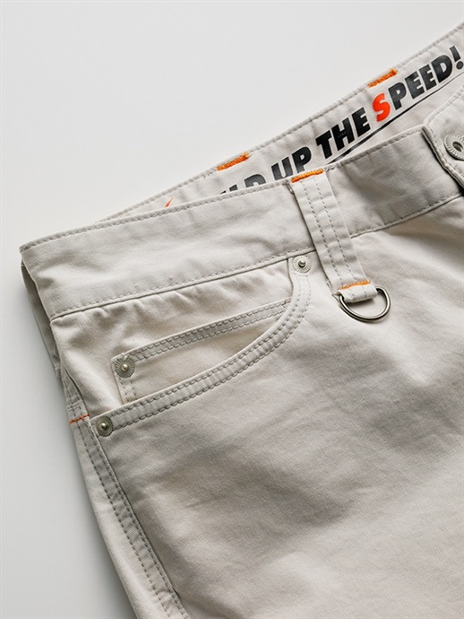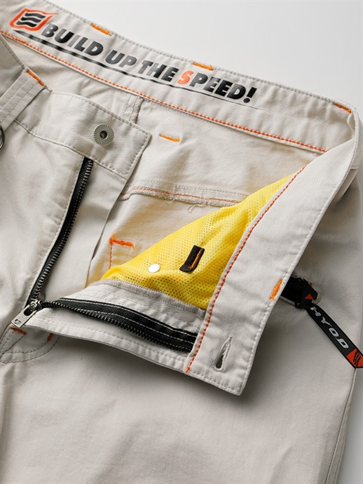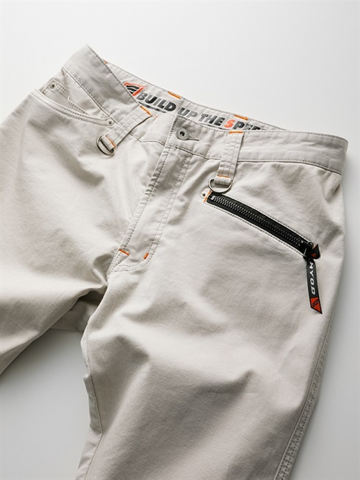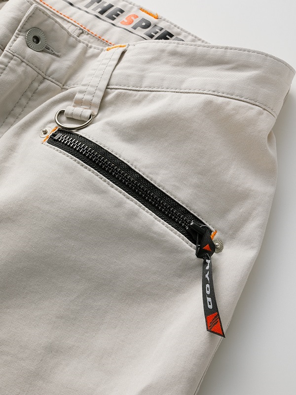 マテリアルには、吸水速乾性に優れたクールマックスツイルストレッチを採用。スーパーストレッチによる高い伸縮性が身体の動きにスムーズに追従し、汗ばむ季節でもサラリとした穿き心地をキープします。裏地やポケット裏には吸汗速乾メッシュを配し、滑りの良さと快適性を両立。左フロントポケットにはファスナーを備え、携行品の脱落を防ぐなど実用性にも配慮しています。