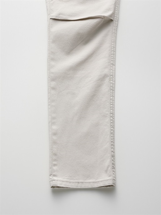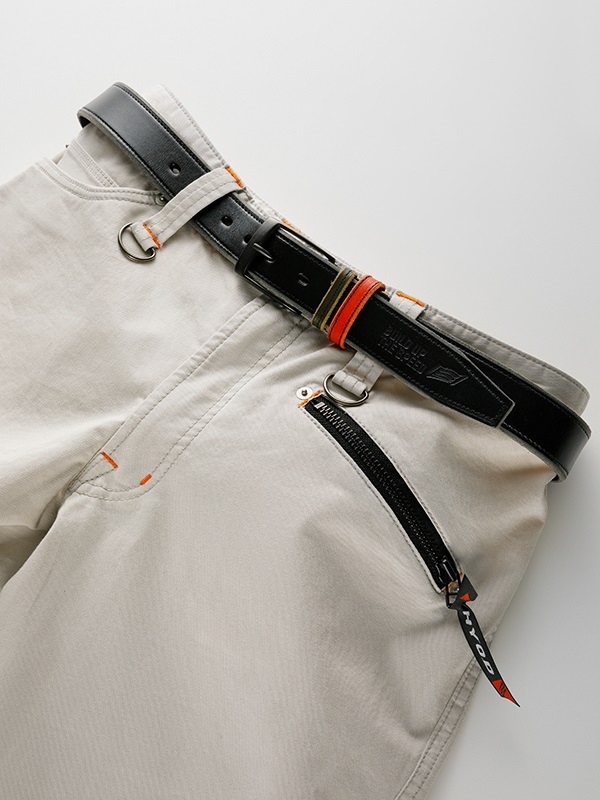 シルエットは、すっきりとしたテーパードスタイル。ヒザにはアクションプリーツを採用することで可動域を確保しつつ、立ち姿でも美しいラインをキープします。シンプルなデザインの中に、ヒップまわりのステッチワークやHYODロゴがさりげないアクセントとして効き、後ろ姿まで印象的に仕上げています。