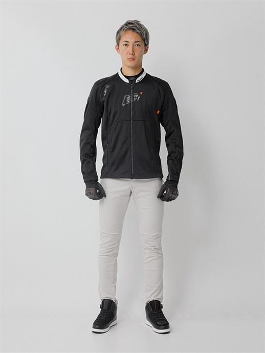 膝には、HYOD QUICK-FIT KNEE PROTECT SYSTEMを採用。プロテクター位置を簡単かつ細かく調整でき、体型やライディングフォームに合わせたフィッティングが可能です。装着や取り外しもスムーズで、日常的な扱いやすさにも優れています。標準装備のD3O® Diablo™ニープロテクター(CE LEVEL1)は、柔らかく軽量で、まるで着けていることを感じさせない自然な装着感。それでいて、ライディングに必要な安心感をしっかりと備えています。