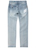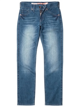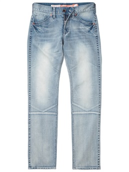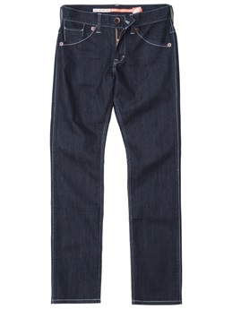 シルエットは、エンジニアブーツに合わせて設計されたテーパードスタイル。裾にかけて絞り込みながらも窮屈さを感じさせないラインが、脚全体をすっきりと見せつつ、跨った際のずり上がりを抑えます。ヒップポケットのデザインやオレンジステッチがアクセントとなり、後ろ姿まで印象的に仕上げています。