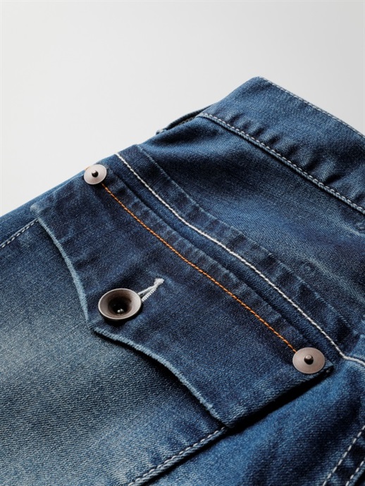 マテリアルには、厳選した国産ストレッチデニムを採用。デニム本来の質感を活かしながら、動きやすさと快適性を両立しています。加工によるあたりやヒゲの表情にもこだわり、穿き始めから自然な風合いを楽しめる仕上がりです。裏地やポケット裏には吸汗速乾メッシュを配し、滑りの良さと快適性にも配慮しています。