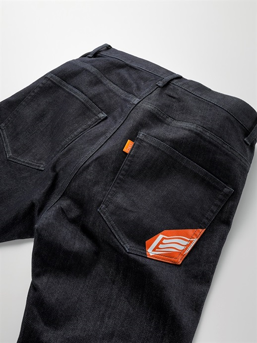 パターンには、股がみの深さを徹底的に研究して導き出されたHYODライディングデニムパターンを採用。前傾姿勢でも腰まわりがしっかりと追従し、背中が出にくい設計としています。足の開きを妨げず、膝も曲げやすい構造により、タイトなシルエットでありながら動きにストレスを感じさせません。腰まわりのフィット感と安定感を確保し、さまざまなライディングシーンで快適な状態を保ちます。