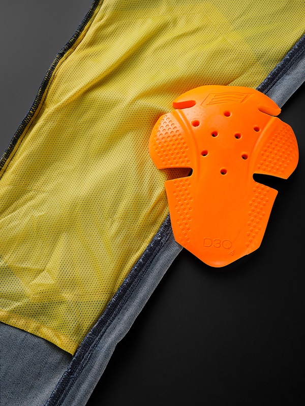 ライナーとして設計された「skinsideR(スキンサイド)」や、Covec®糸を使用した高性能生地「oneskinR(ワンスキン)」はどちらもCovec®の持つ機能(引裂き強度・耐切断性・耐摩擦強度・対破裂性など)をすべて保持するように設計されています。HYOD Covec® BIKERS PANTSとHYOD Covec® BIKERS ZIP VENTは、デニム自体にCovec® yarns(コベック糸)を使った“oneskinR”を採用し、ストレッチ性のある軽量構造のデニムでありながら、切断や引裂き強度、耐摩耗性に優れたデニムパンツに仕上げています。