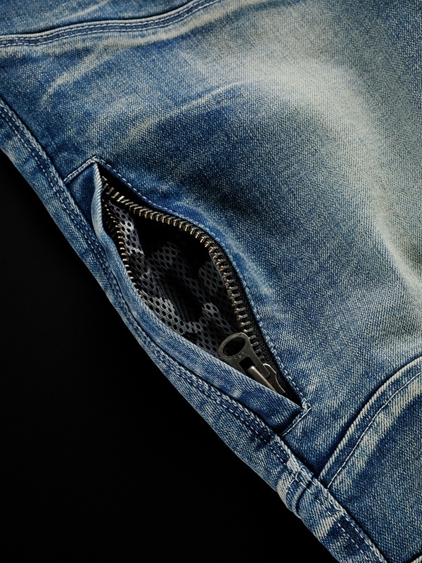 引張強度と引裂強度の高いCovec®yarns(コベック糸)を採用。万が一の転倒の際の強度に優れたデニムパンツです。裏地前側のライディング姿勢時に肌と接する部分には吸水性・速乾性に優れたポリエステルメッシュインナーを採用しています。