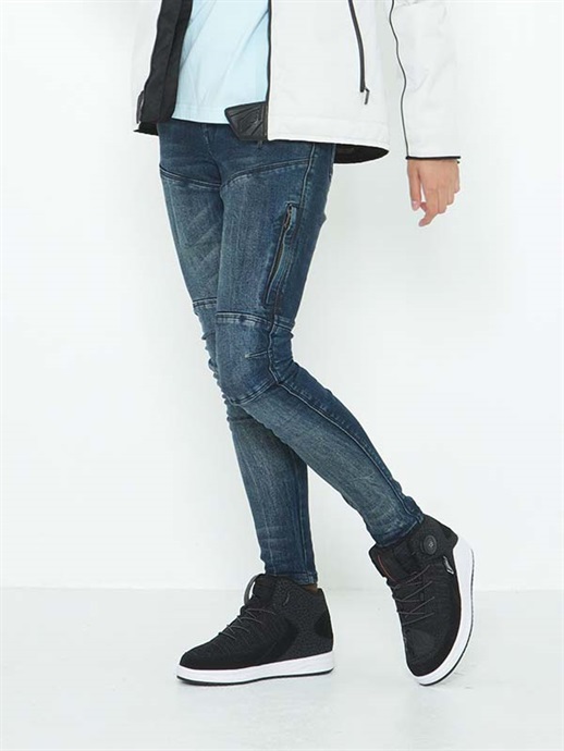ライナーとして設計された「skinsideR(スキンサイド)」や、Covec®糸を使用した高性能生地「oneskinR(ワンスキン)」はどちらもCovec®の持つ機能(引裂き強度・耐切断性・耐摩擦強度・対破裂性など)をすべて保持するように設計されています。HYOD Covec® BIKERS PANTSとHYOD Covec® BIKERS ZIP VENTは、デニム自体にCovec® yarns(コベック糸)を使った“oneskinR”を採用し、ストレッチ性のある軽量構造のデニムでありながら、切断や引裂き強度、耐摩耗性に優れたデニムパンツに仕上げています。