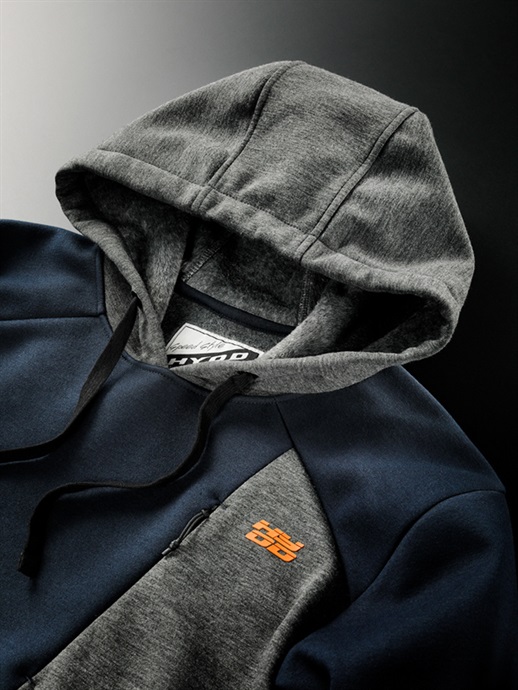 左裾には“HYOD OFF LINE WEAR”の織りネームをレイアウト。バイクに乗らない「OFF TIME」にもバイクを感じていたい。そんなライダーのワードローブに是非加えていただきたいアイテムです。もちろん「ON TIME(バイクシーン)」での着用も可能です。