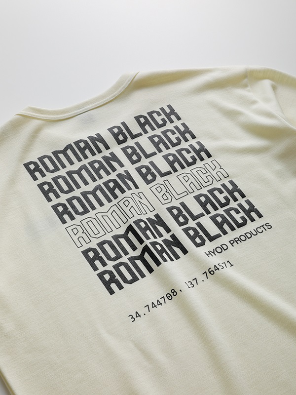 左胸に“ROMAN BLACK”のプリント入り。背面にも“ROMAN BLACK”を広いエリアにレイアウトしています。