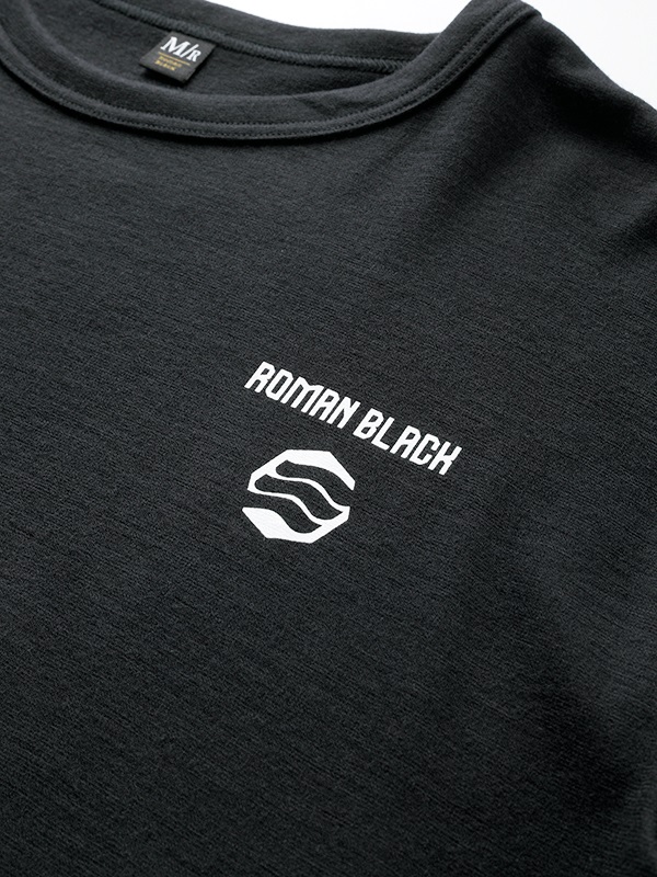 左胸にローマンブラックとクレストマークのプリントを施しています。シンプルで高級感のある仕上がりが特徴のロングスリーブTシャツです。