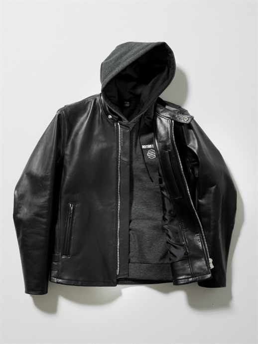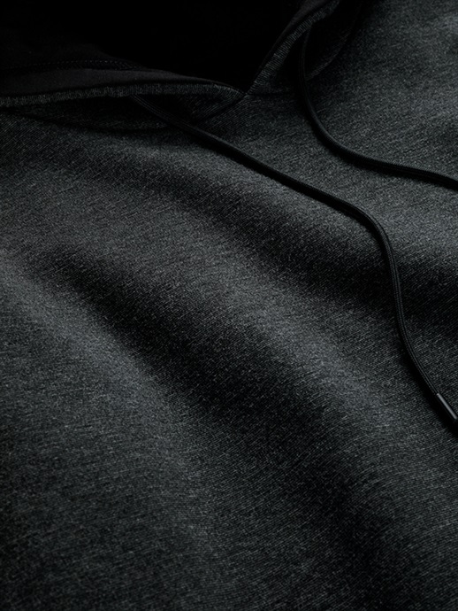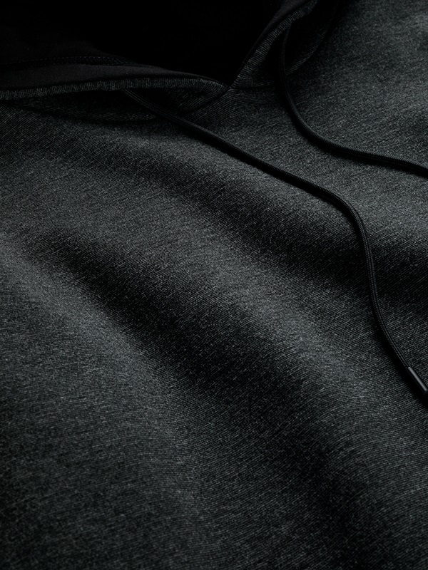 フードが寝てしまわないように、フードの内側に生地を縫い合わせています。本体素材のDUALWARM®の裏側は、保温性の高い裏起毛仕様に仕上げています。