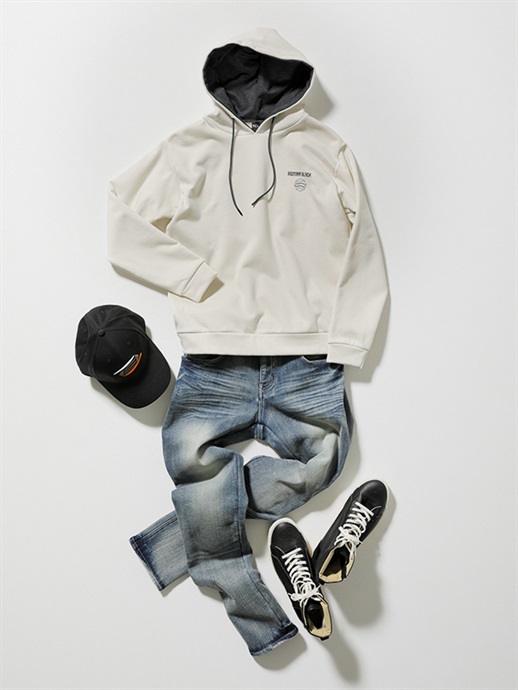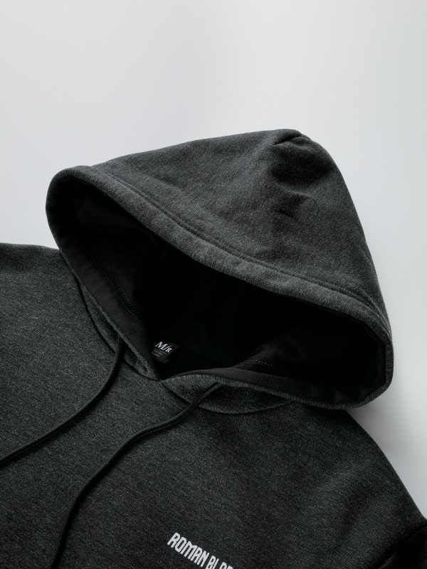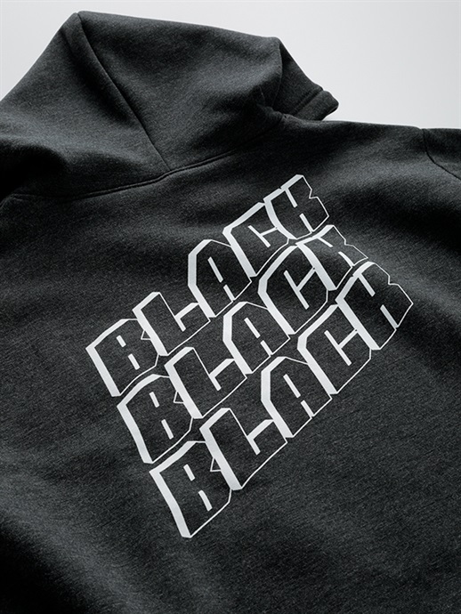 左胸にローマンブラックとクレストマークのプリント、背中に大きく斜めに“DIAGONAL BLACK”のプリントを施しています。大胆なバックプリントが特徴のプルオーバースタイルのフーデッドシャツです。