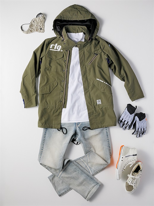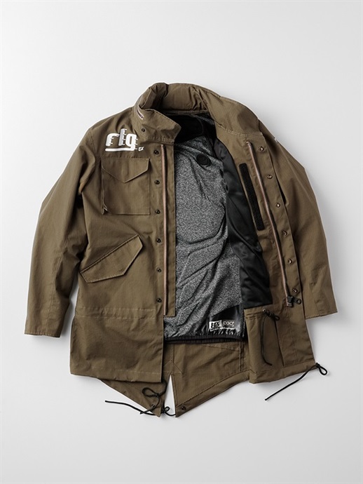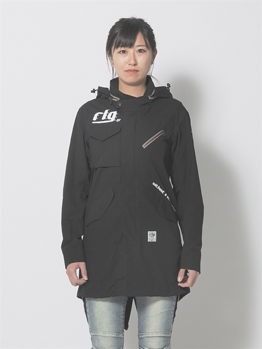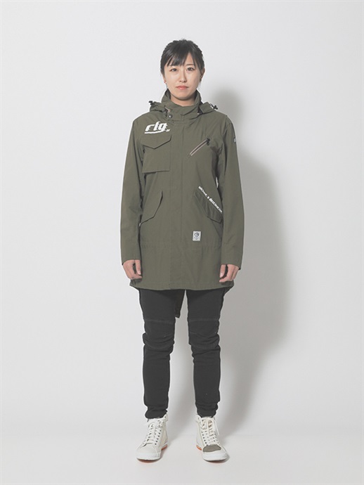 前身のramblingロゴやフラップ付きのサイドポケット、斜めに配置されたファスナー付きの胸ポケットのディテールもモッズコートがモチーフになっています。