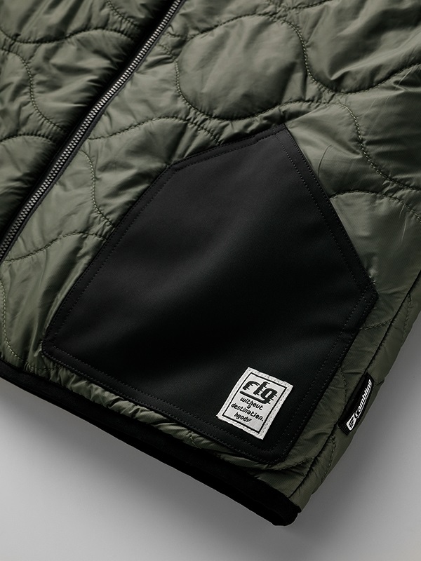 3M社の高機能中綿素材、“3M™ シンサレート™”を使用しています。微細な繊維構造により優れた断熱性を実現した、薄く、軽く、暖かい理想的な断熱素材です。裏地はキルトパターンで仕上げています。