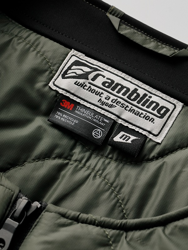 素材に、軽くしなやかなポリエステルタフタを使ったインナーライナーです。RMJ303・HYOD rambling NICKやHYOD365シリーズのオールシーズンモデルに取り付けたり、そのまま普段着としても着用することができます。