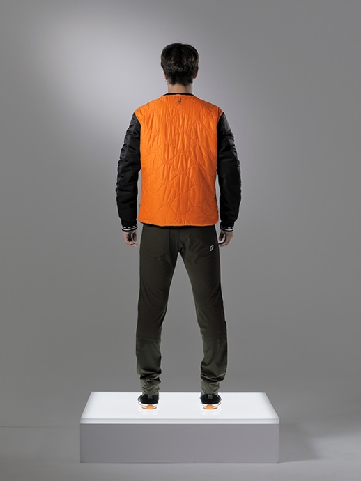 ジャケットのインナーとしてはもちろん、アウターとして着用可能なようにキルトデザインで仕上げました。より防風効果を高めるために、HYODパフォーマンスアパレルをレイヤリングすることもおすすめしています。