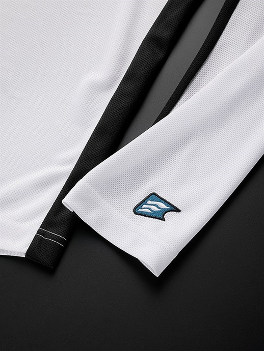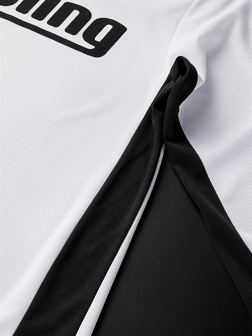 サラリと肌触りの良いメッシュ生地を使用。脇下から体側部分にかけて通気性の良いメッシュ生地を採用することにより、夏場の快適性を考慮。比較的身幅にゆとりを持ったパターンを採用。後裾はラウンドした形状で長めにしました。