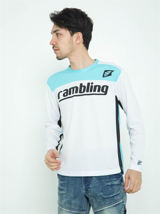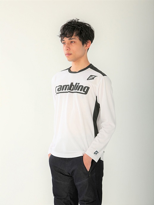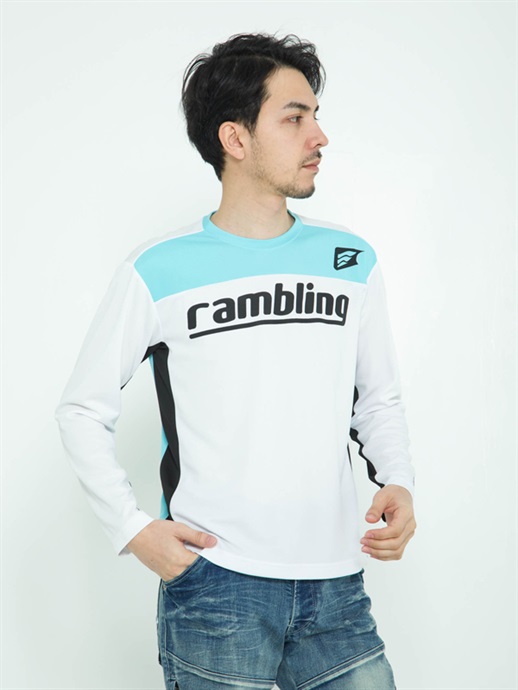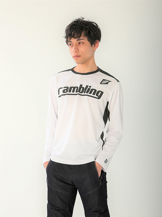 フロント・バックには“rambling” ロゴ、ワンポイントロゴマークをプリント。左袖口にワンポイントロゴ刺繍を配置しアクセントとしています。
