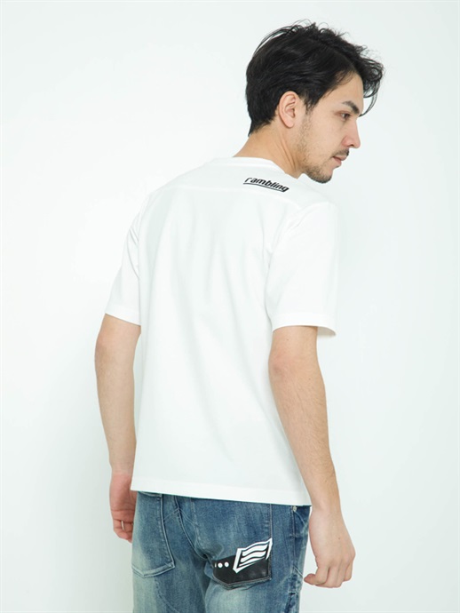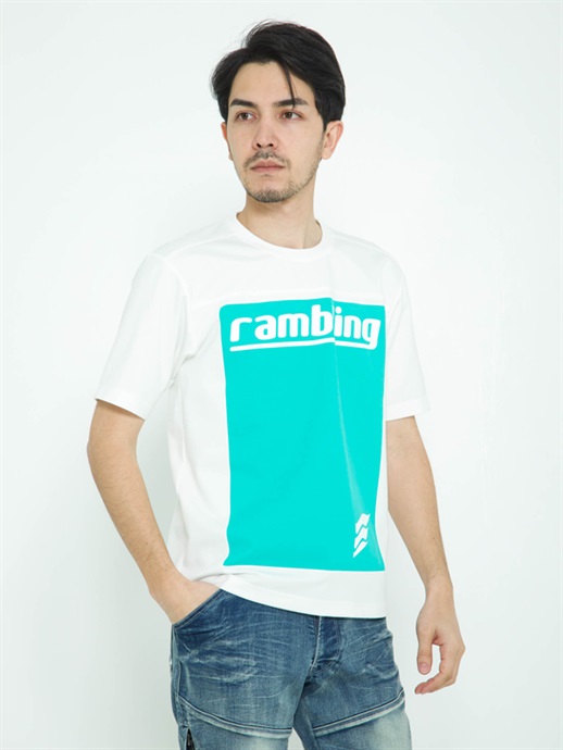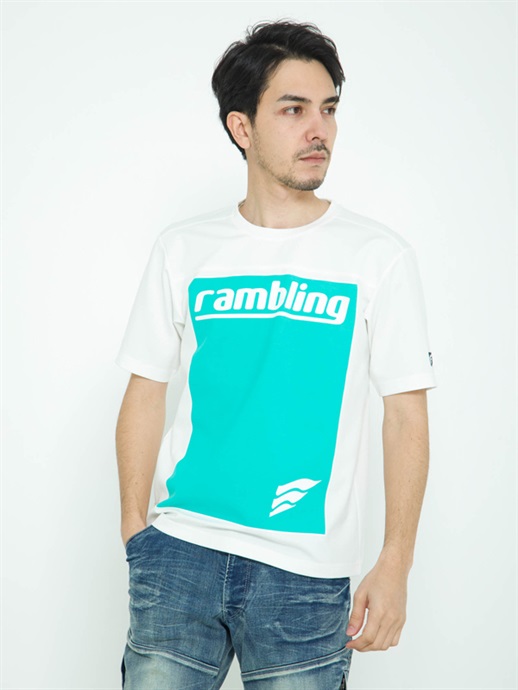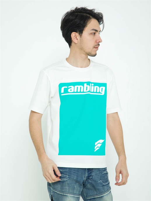 自由をテーマにした“rambling(ランブリング)”シリーズのショートスリーブT シャツ。なめらかで風合いの良いコットン生地を使用。比較的身幅にゆとりを持ったパターンを採用しました。フロント・バックには“rambling” ロゴ、ワンポイントロゴマークをプリント。左袖口にワンポイントロゴ刺繍を配置しアクセントとしています。モデル:身長178cm B95 W76 H91 / 着用サイズ:M