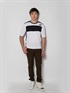肩幅と身幅にゆとりをもたせたパターンを採用。裾の後ろ側を少し長めのラウンド形状で仕上げています。袖丈はハーフスリーブより少し長めのミドル丈で仕上げています。
