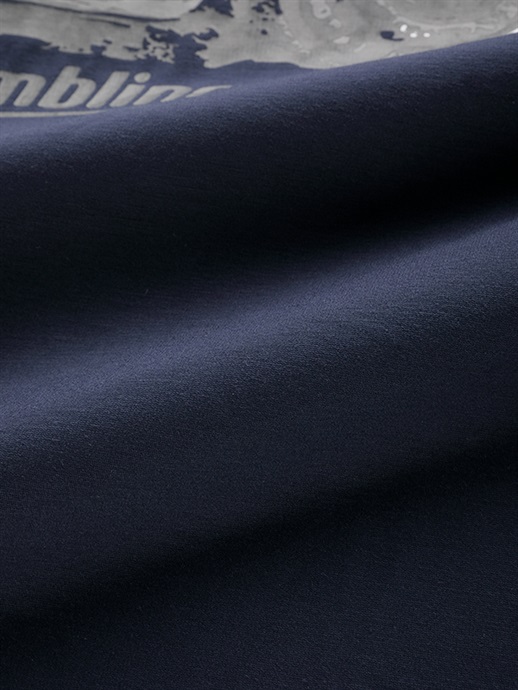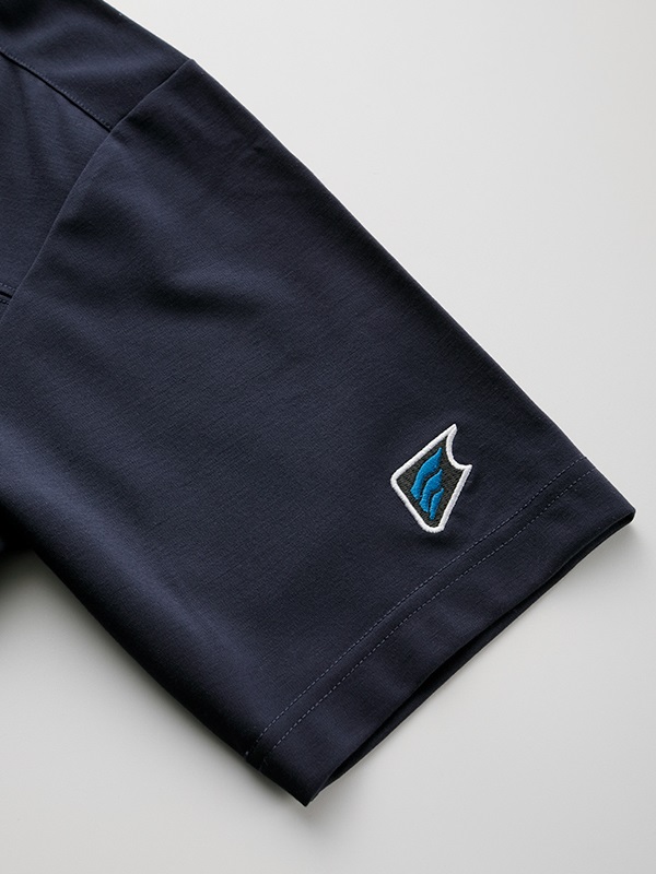 肩幅と身幅にゆとりをもたせたパターンを採用。左袖にはramblingのロゴマークの刺繍をいれてアクセントとしています。