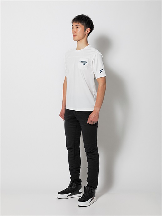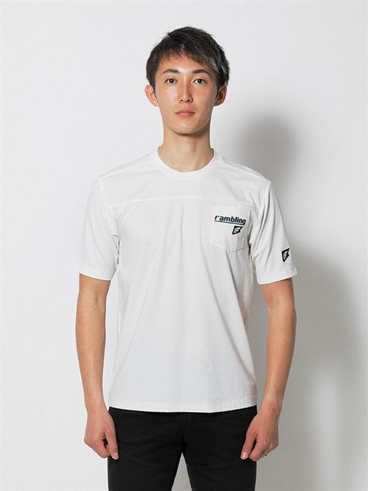 フットボールシャツをモチーフにしたランブリングのTシャツ。左胸にロゴをプリントしたポケットをレイアウトしています。