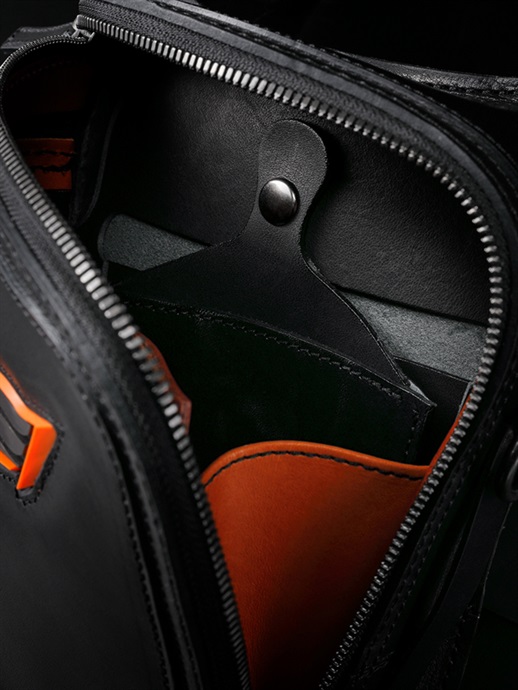 スムーズに荷物の出し入れができるL字ファスナーや内装は細かく収納を分けられるポケットも装備し、必要最低限の荷物を効果的かつスマートに持ち歩くことができます。