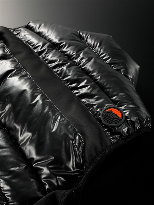 素材には光沢感のあるシレー加工を施したタフタに、軽さと保温性の高い中綿をインサートすることで効果的に保温性を高めています。