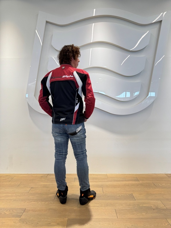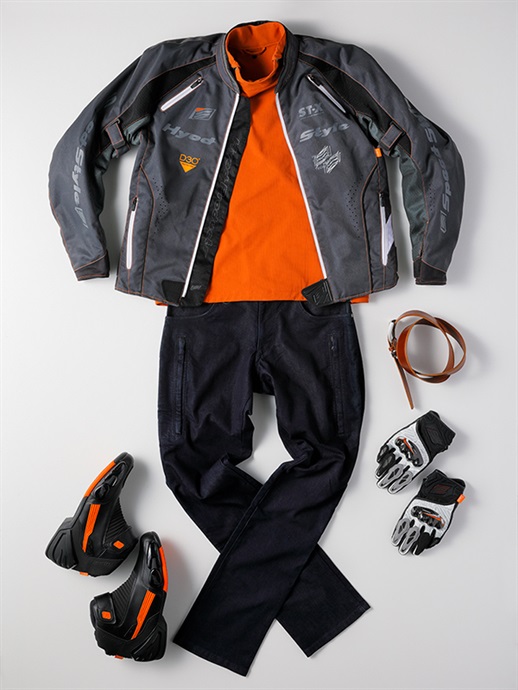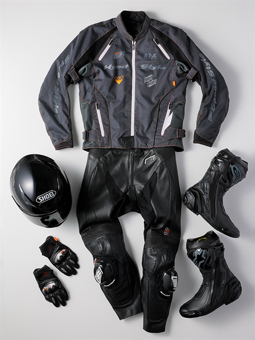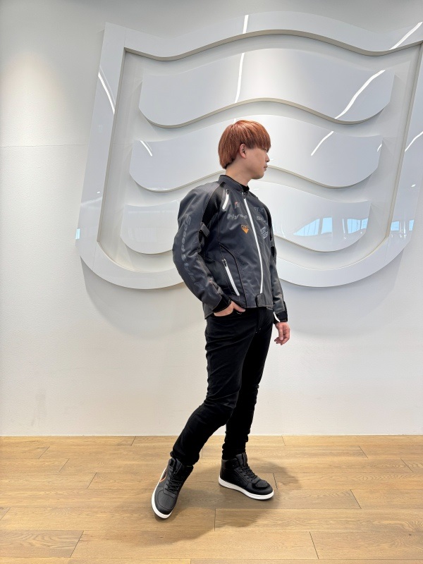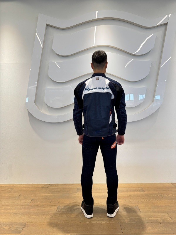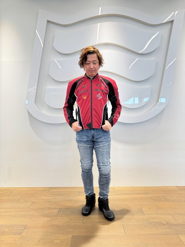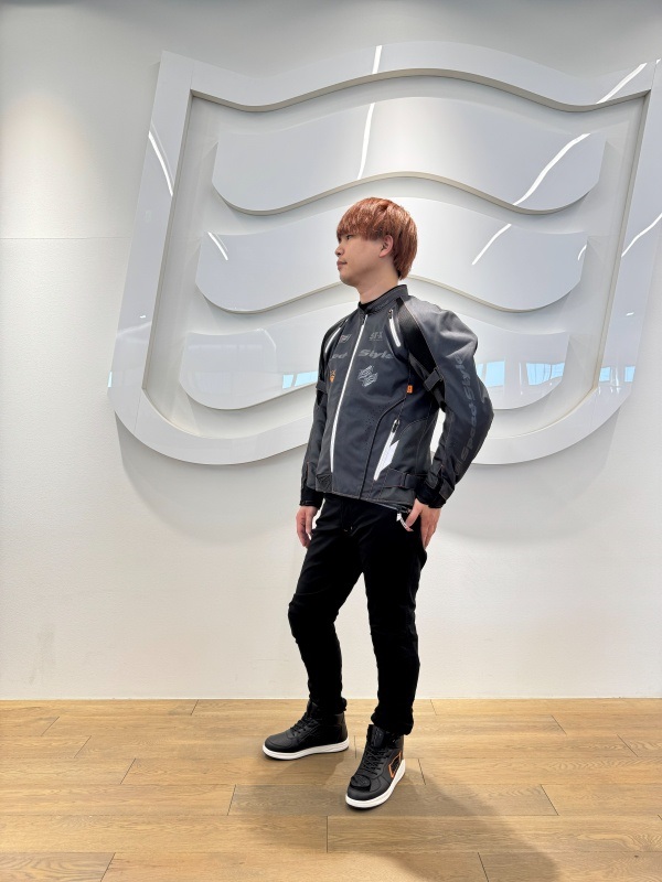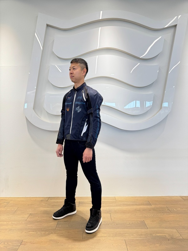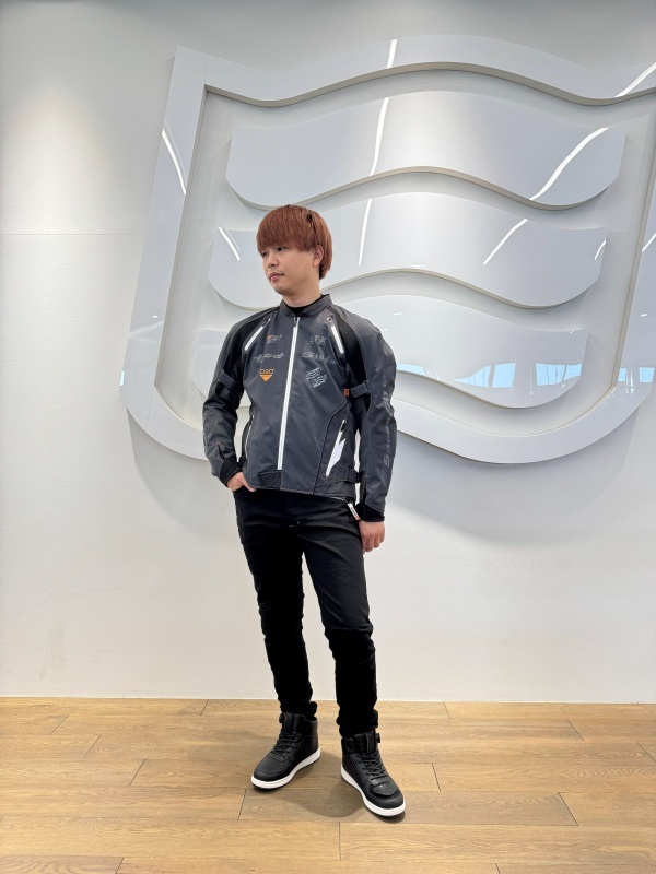 ジャケットの下に身につけるエアバッグウエア“AIR-BOOST”。日本人専用設計で、安全性能をアップグレードできます。