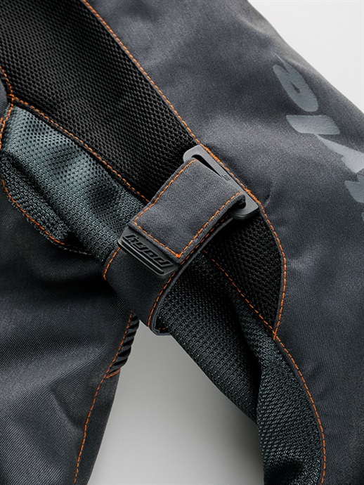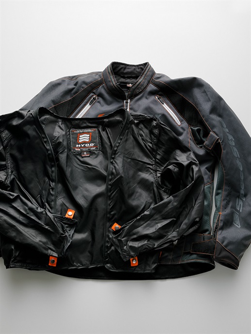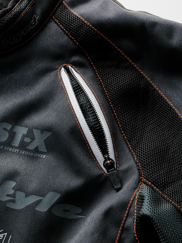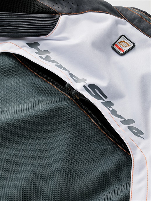 HYOD AIR-BOOSTはHYODが日本人の体型に合わせて独自に開発した専用パターンとストレッチ素材を組み合わせることで、ライディング時のフィット感にすぐれ、動きやすくて着ていることを感じさせない着用感となっています。サイズはSサイズから3Lサイズを取り揃え、体型に合うサイズをお選びいただくことでより安全性は高くなります。また、本体前面にエアスルーホールを配置するほか、フロントとサイドに通気性と伸縮性のあるメッシュパネルを採用。さらに本体裏地には通気性にすぐれるダブルラッセルを採用することで内側の蒸れを軽減し快適性を実現しています。レザーウエアからテキスタイルウエアまで、自分好みのアウタージャケットの下に着用できるHYOD AIR-BOOSTで安全性能をアップグレードできます。