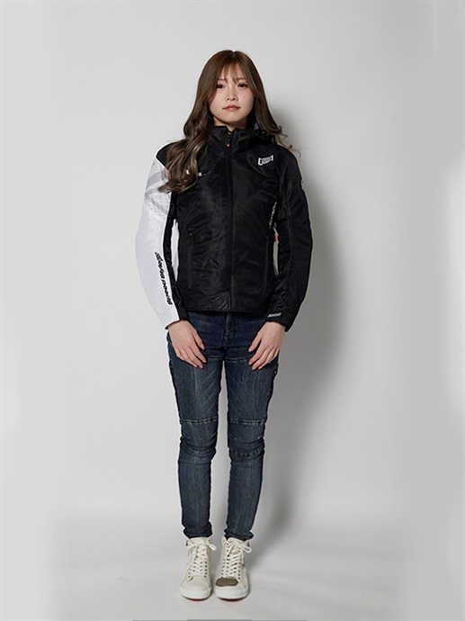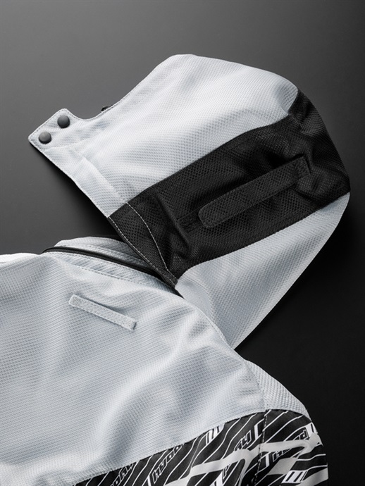 ファスナーでジョイントしているフードは取り外すことができます。高速走行などによりフード部分のバタつきが気になるときやジャケットの印象を大きく変えたいとき、自分の好みやTPOに応じて使い分けができるのもフーデッドウエアの特徴のひとつです。