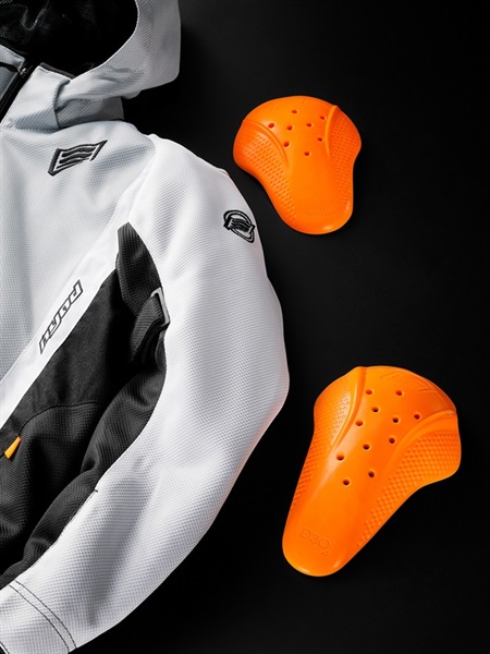 肩と肘にソフトでフレキシブルな驚異の衝撃吸収材、D3O®プロテクターを装備して、快適な着心地とハイスペックな安全性能を両立させています。また、背中には高反発タイプのウレタンフォームパッドを標準装備しています(ウレタンフォームパッドからHYZ902・D3O® VIPER STEALTHバックボーンプロテクターにアップグレードしてプロテクション性能を高めることも可能です)。D3O®プロテクターはいずれも欧州の厳しい安全基準「CE規格」をクリアしています。