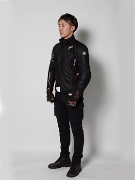 ジャケットとパンツをファスナーでジョイントするスポーツスーツシステムを装備しています。連結するファスナーの長さを共通にし、ジャケットとパンツが異なるサイズでもジョイントすることができます。ジャケットのめくれあがりを防ぎ、転倒時の安全性を高める効果があります。